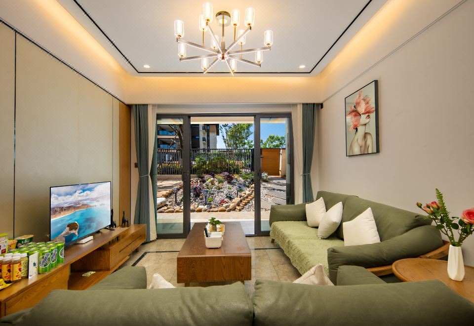 舒适棋牌两居叠院套房(花园+冰箱+洗衣机+厨房+休闲桌椅)