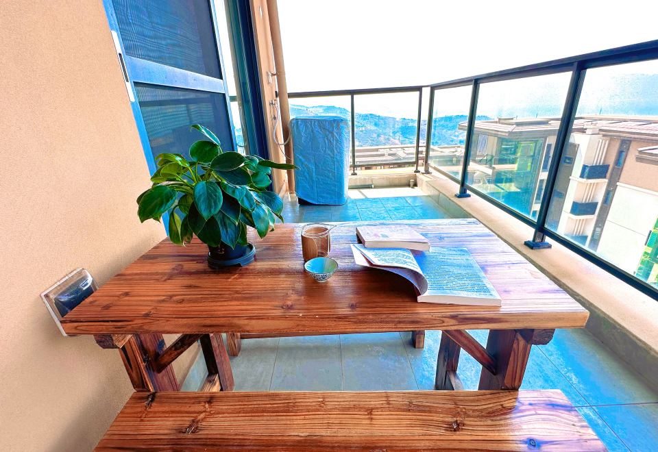 湖景落日两居叠院套房(阳台+休闲桌椅+冰箱+洗衣机+厨房)