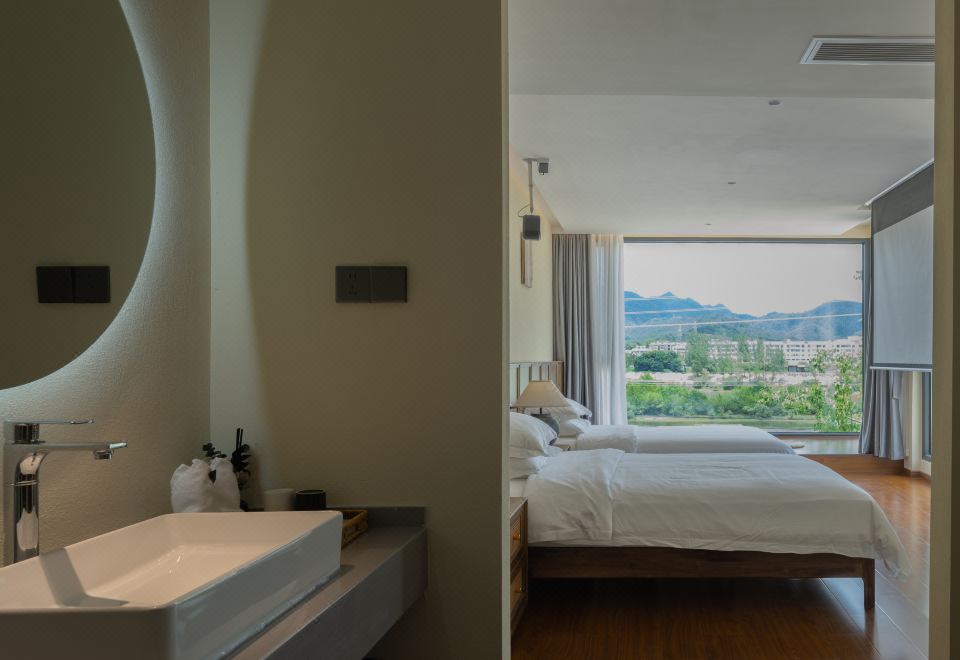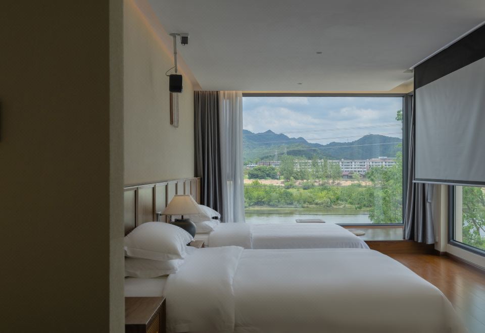 茶香-家庭房「院纳清风·窗映青山」落地窗前|巨幕投影