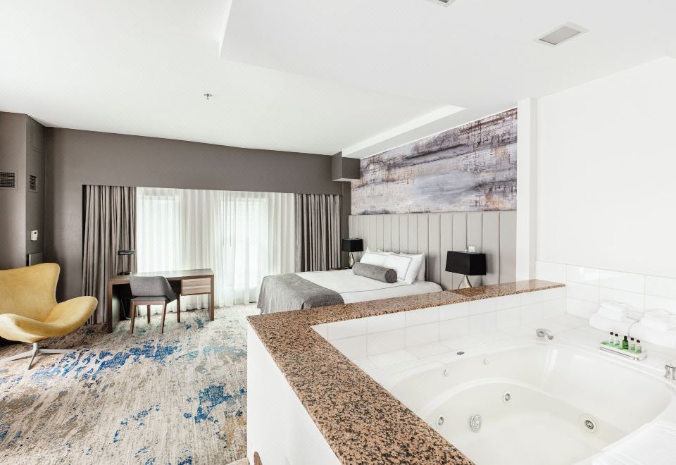 With a stay at Atheneum Suite Hotel, you'll be centrally located in Detroit, steps from Hollywood Casino at Greektown and 13 minutes by foot from Huntington Place. This boutique hotel is 0.3 mi (0.5 km) from GM Renaissance Center and 0.4 mi (0.7 km) from Ford Field.Take advantage of recreation opportunities such as a fitness center, or other amenities including complimentary wireless internet access and a banquet hall. Getting to nearby attractions is a breeze with the complimentary area shuttle that operates within 5 miles.Satisfy your appetite for dinner at the hotel's restaurant, Symposia, or stay in and take advantage of the room service (during limited hours). Wrap up your day with a drink at the bar/lounge. Cooked-to-order breakfasts are available daily from 6:30 AM to 10:30 AM for a fee.Featured amenities include a 24-hour business center, express check-in, and express check-out. Planning an event in Detroit? This hotel has 32 square feet (3 square meters) of space consisting of conference space and meeting rooms.Make yourself at home in one of the 174 air-conditioned rooms featuring refrigerators and plasma televisions. Complimentary wireless internet access keeps you connected, and cable programming is available for your entertainment. Bathrooms feature shower/tub combinations, complimentary toiletries, and hair dryers. Conveniences include phones, as well as safes and desks.