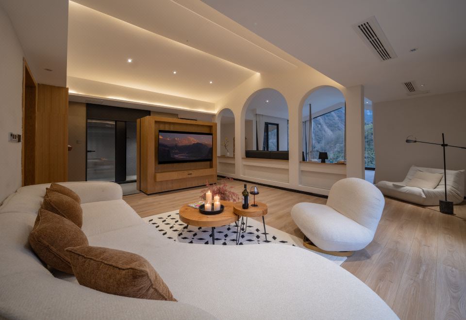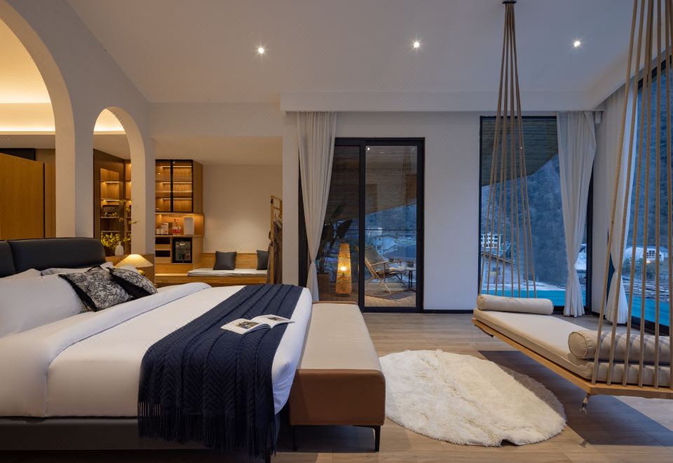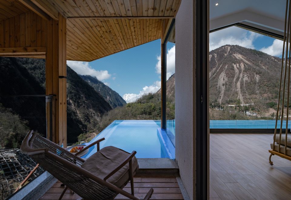 【 闲云月 】| 无边温泉雪山全景超大套房+凸型独立泳池+全屋智能+乳胶床品+躺泳泳池观贡嘎雪山+观日照金山+室内秋千+270度环绕雪山景观