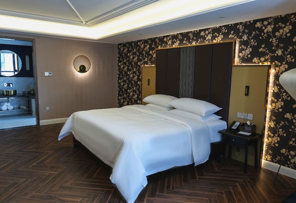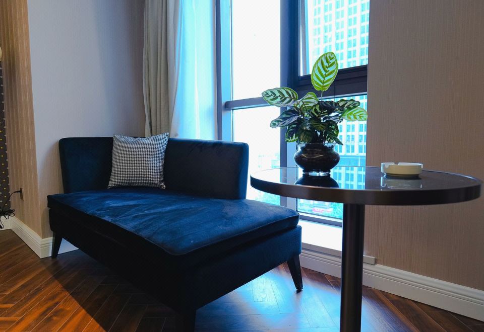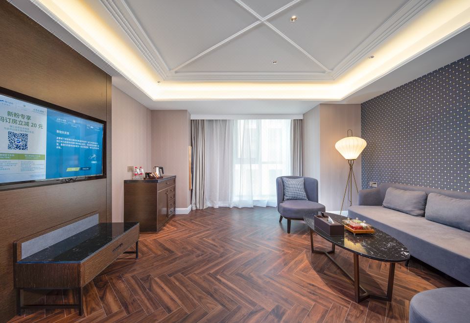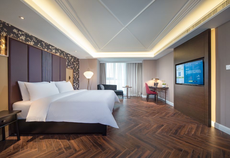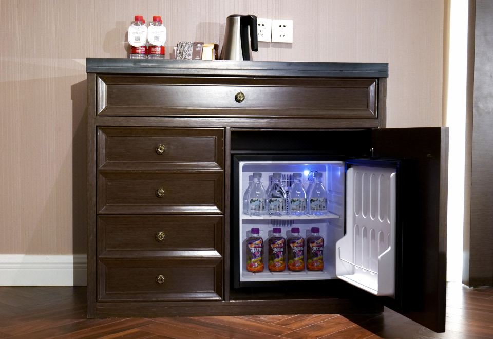 Elegant Business Room With Tv Projection And Mini Fridge