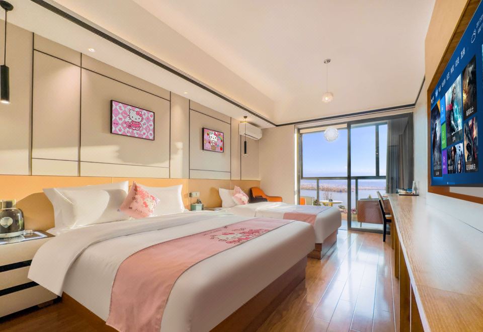 Qionghai Vista Sunshine Twin Room With Panoramic Floor-to-Ceiling Window