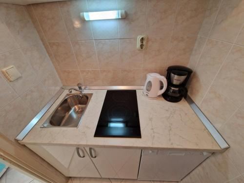 The apartment provides guests with a patio, garden views, a seating area, satellite flat-screen TV, a fully equipped kitchenette with a dishwasher and a fridge, and a private bathroom with shower and a hair dryer. A stovetop and kitchenware are also featured, as well as a coffee machine and a kettle. At the apartment complex, the units have bed linen and towels.