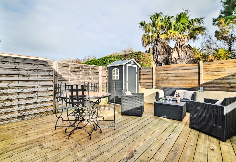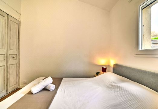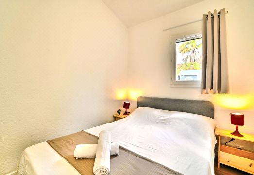 Small terraced house "Le Douhet 2", 2 storeys. In the resort 550 m from the centre of Port du Douhet, in the residential district, 80 m from the sea, 80 m from the beach, road to cross. Private: property 30 m2 (fenced), parking. Shop 5 km, grocery 5 km, supermarket 5 km, restaurant, bar 550 m, bakery 5 km, café 5 km, bicycle rental 5 km, bus stop "Office du tourisme (la Brée)" 3.5 km, railway station "Rochefort sur Mer" 55 km, sandy beach "Plage du Douhet" 80 m. Sports harbour 100 m, golf course (9 hole) 12 km, surf school 600 m. Nearby attractions: Iléo centre aquatique 12 km, Phare de Chassiron 18 km, Port de la Cotinière 10 km, Corderie Royale Rochefort 55 km, La Rochelle 84 km. The keys‘ handover takes place by the agency Interhome in St Pierre d'Oléron, 9 km. 3-room terraced house 30 m2. Beautiful furnishings: living/dining room with TV (flat screen). Exit to the terrace. 1 room with 1 french bed (1 x 140 cm, length 190 cm). Kitchenette (oven, dishwasher, 3 induction hot plates, toaster, kettle, microwave, electric coffee machine). Bathroom, sep. WC. Electric heating. Upper floor: 1 room, without window with 2 beds (80 cm, length 190 cm). Large terrace 30 m2. Terrace furniture, barbecue. Facilities: washing machine, hair dryer. Internet (WiFi, free). Parking. Please note: smoke alarm. Offer by a private individual according to Art. 155, IV of CGI. 17337000064E7