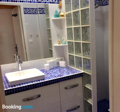 这家空调公寓配有2间卧室、起居室、带冰箱和咖啡机的设施齐全的厨房以及1间带淋浴设施和免费洗浴用品的浴室。这家公寓还配备休息区、洗衣机以及1间带吹风机的浴室。