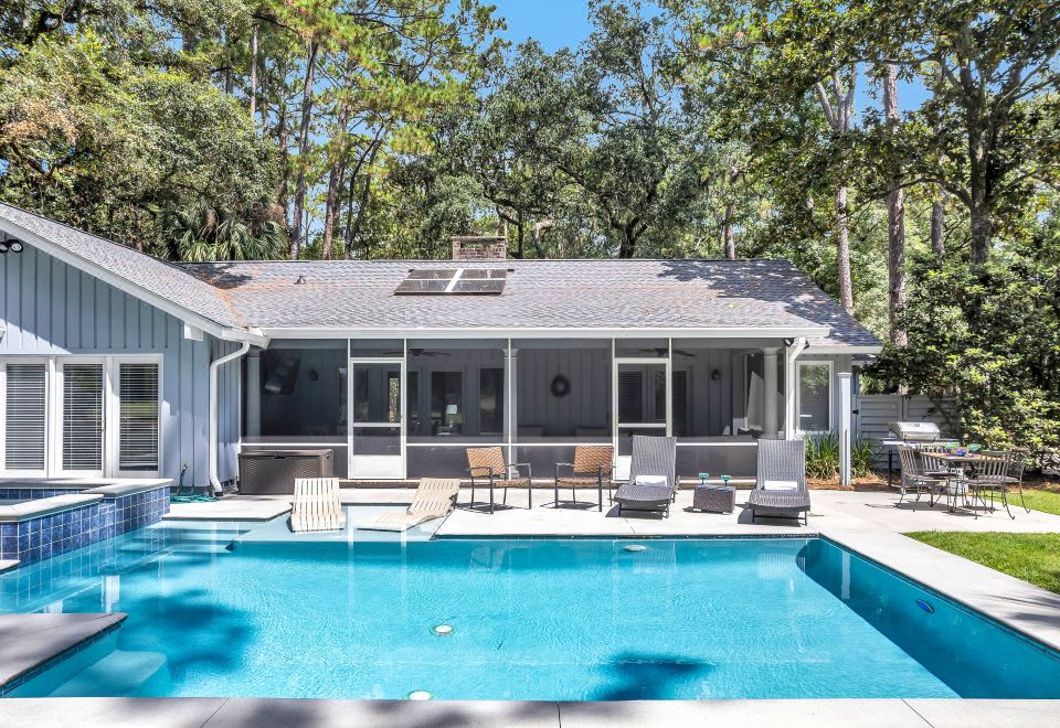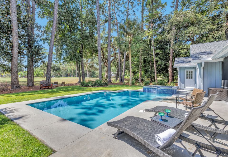 Tranquil Retreat with Pool and Golf Course Views - Elegant Coastal Oasis address: 10 Willow Oak Road, Hilton Head Island, South Carolina