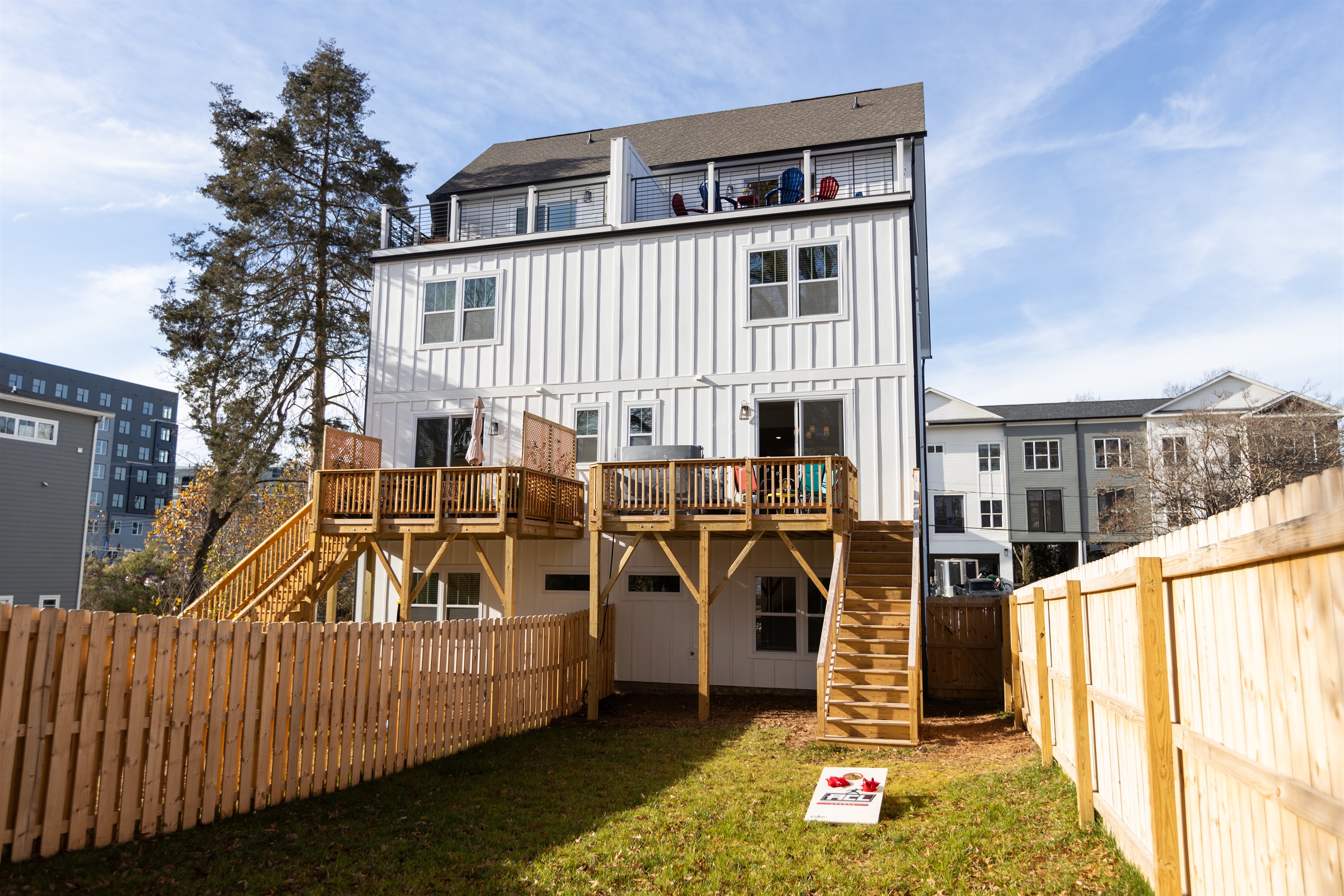 - Large private backyard, cornhole included