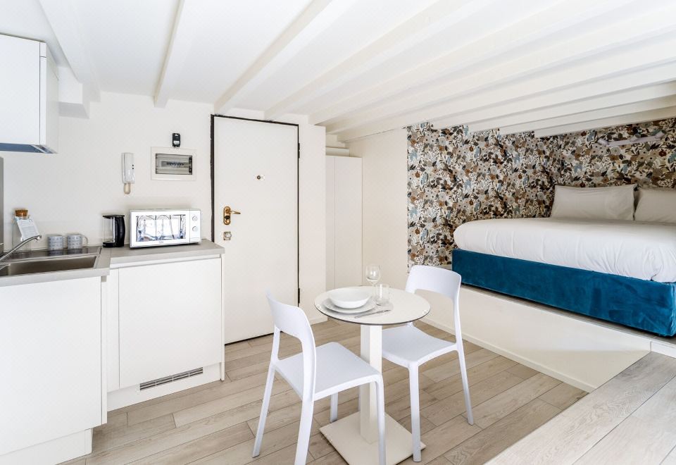 开间, 1 张单人床, 简易厨房