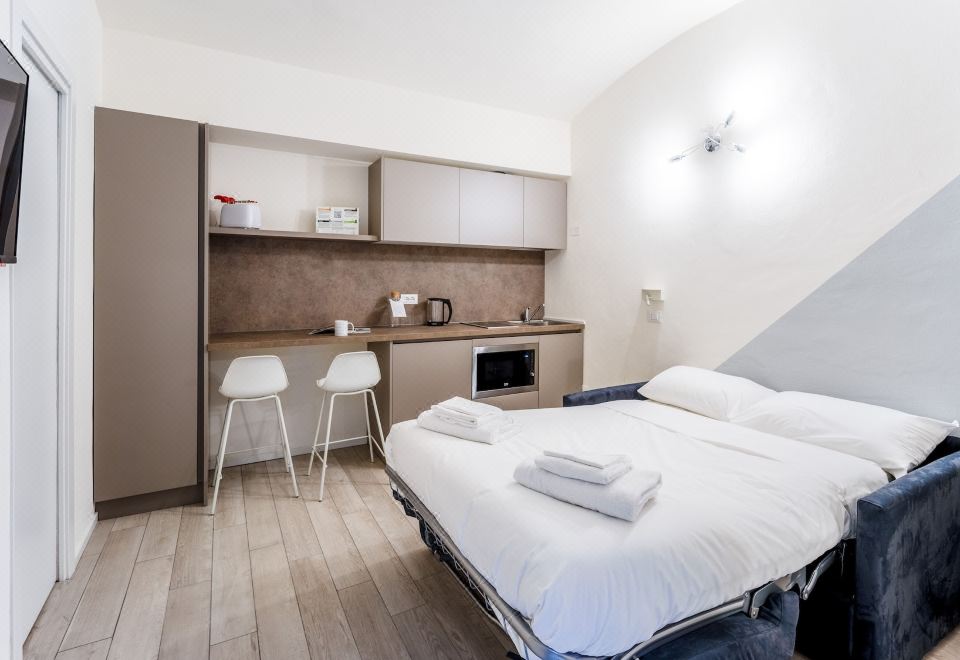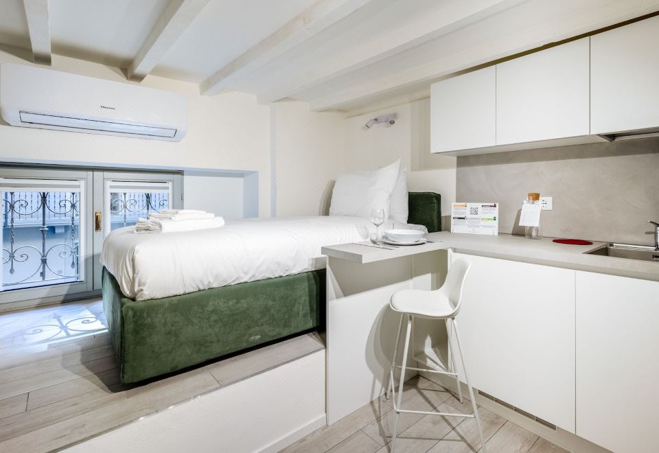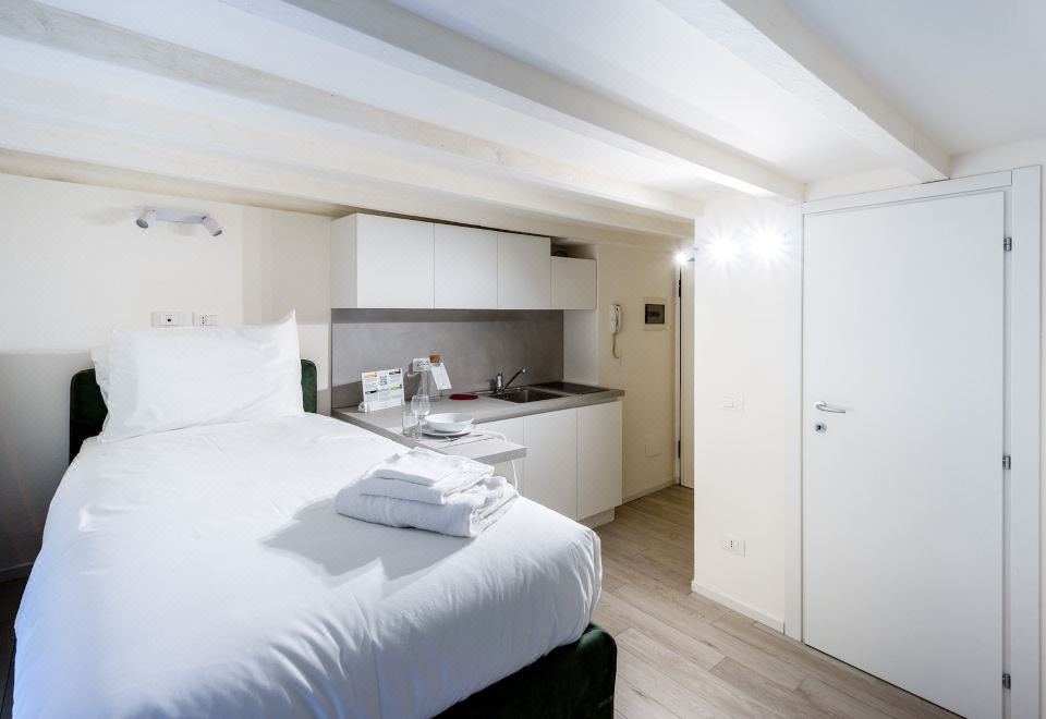 开间, 1 张单人床, 简易厨房