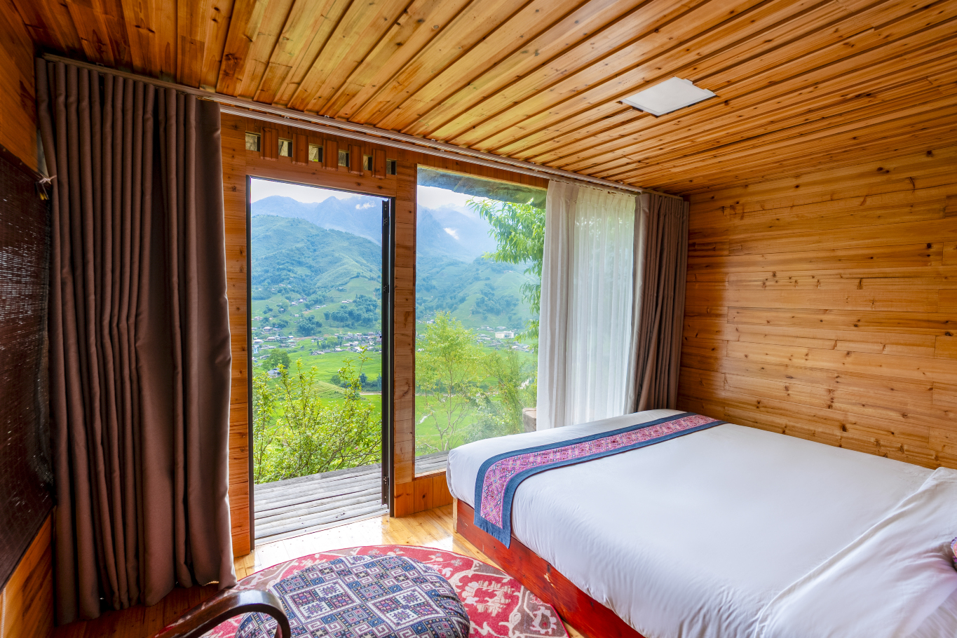 从 Eco Farmer House 望去,连绵不断的梯田、雄伟的山峦和翠绿的山谷尽收眼底。这里是休息、放松身心和体验慢生活的理想空间。