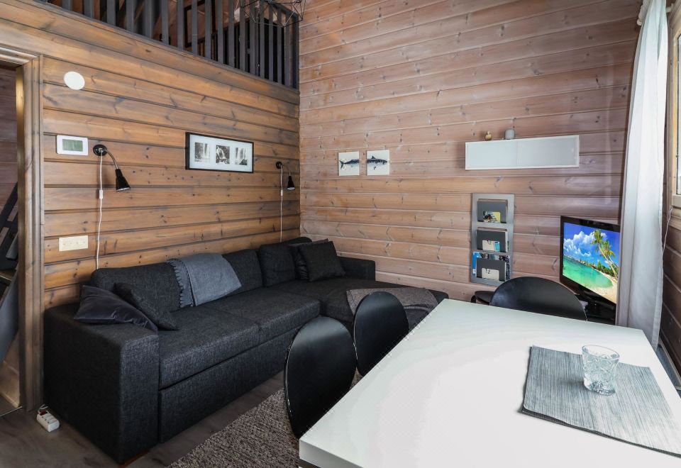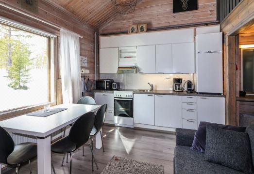Log-built apartment in a row house with an excellent location in Äkäslompolo village. Services such as shops and equipment rentals are within walking distance. You can access the ski trails directly from the apartment’s doorstep.