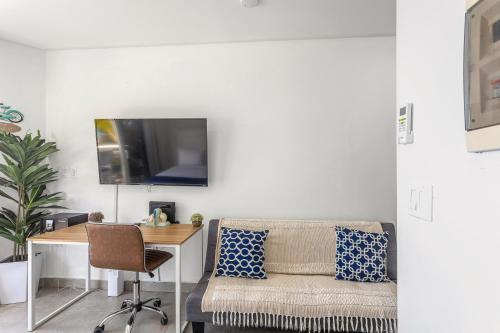 这家空调公寓配有1间卧室、起居室、带冰箱和咖啡机的设施齐全的小厨房以及1间带淋浴设施的浴室。这家公寓也配备休息区和1间浴室。