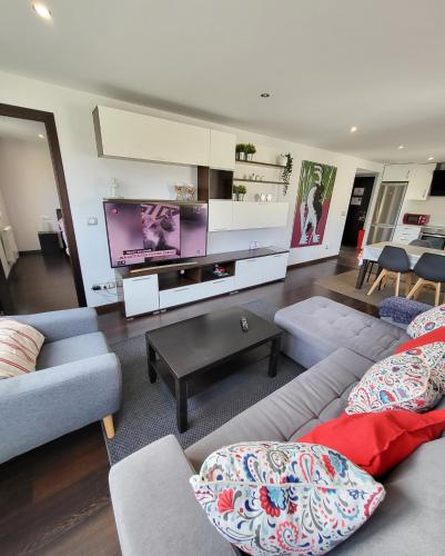 这家公寓配有2间卧室、起居室、带冰箱和咖啡机的设施齐全的厨房以及1间带淋浴设施和热水浴池的浴室。这家公寓还配备休息区、洗衣机以及1间带免费洗浴用品的浴室。