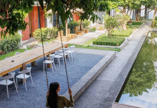 民宿位于惠州市博羅縣東江邊,純白色的方塊建筑乾凈簡約,在青山綠水之間半掩著別樣洞天。連天碧草、小橋流水、幽林宴席、無邊泳池,美學客房溫馨浪漫,只期一個緣分,為你開啟自在純凈之旅。走進院子,潺潺水聲婉轉而來,木桌石臺有序散落,小貓小狗自由嬉鬧。兩棵蔥郁的荔枝樹將日光剪影,一縷茶香為春秋冬夏書寫時光的答案。駐足庭院,你會明白:山里院子追求的并不是獨美,而是自然與空間彼此相依的共生關系,四季流轉,生生不息。客房由舊校舍改造而成,保留了瓦片鋪頂的嶺南鄉村元素,室內設計風格以簡約調性為主,白灰色調構的墻面與低彩度的家俱搭配出清晰明快的藝術風格。拾級而上,無邊際私家泳池就是度假的真理,眺望青翠的竹林和遠山,愜意時光緩緩遷延。頭枕月光心超然,萬籟俱寂落雨來。壁爐、天窗、一方茶桌、每個角落,一片赤誠。